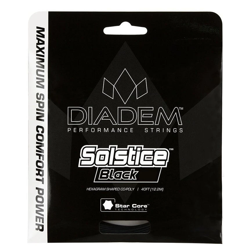 Diadem Solstice Black is a new generation of a comfortable soft co-poly with a six-pointed star shape and an even softer feel than Solstice Power. Diadem Solstice Black also delivers better tension maintenance thanks to an updated extrusion process. The result is a string that combines a low-friction surface with maximum ball bite. In other words, this string was built for spin – massive spin.