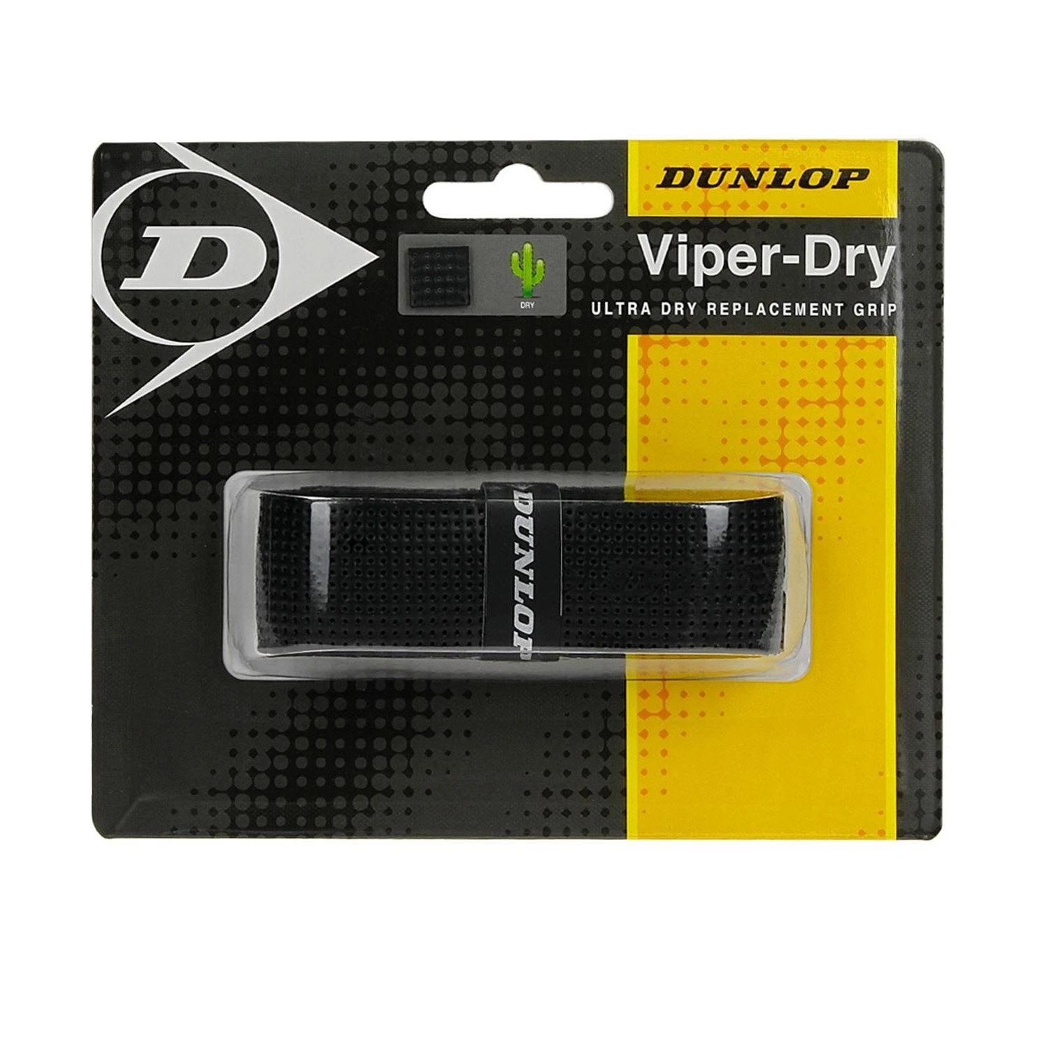 The Dunlop Viper-Dry Grip takes the moisture from your hands to provide a slip-free feel when holding your racquet. Inspired by the sand viper snake, who absorbs moisture through its skin, allowing it to survive in the dryness of the desert. The grip emulates this wonder of nature with the moisture absorbing holes.